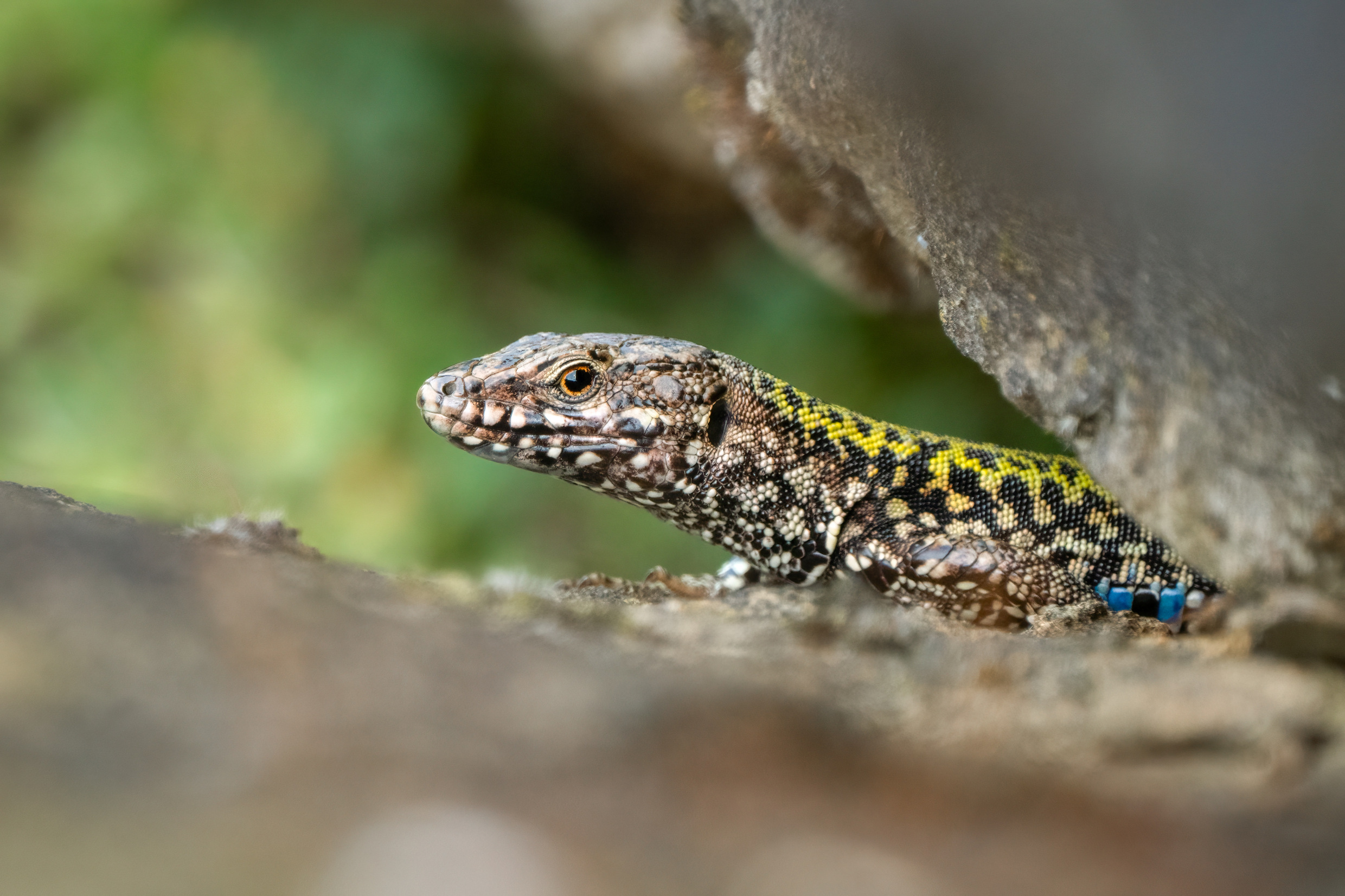 Jährlich an der selben Natursteinmauer treffe ich auf dieses besonders farbige Exemplar einer Mauereidechse