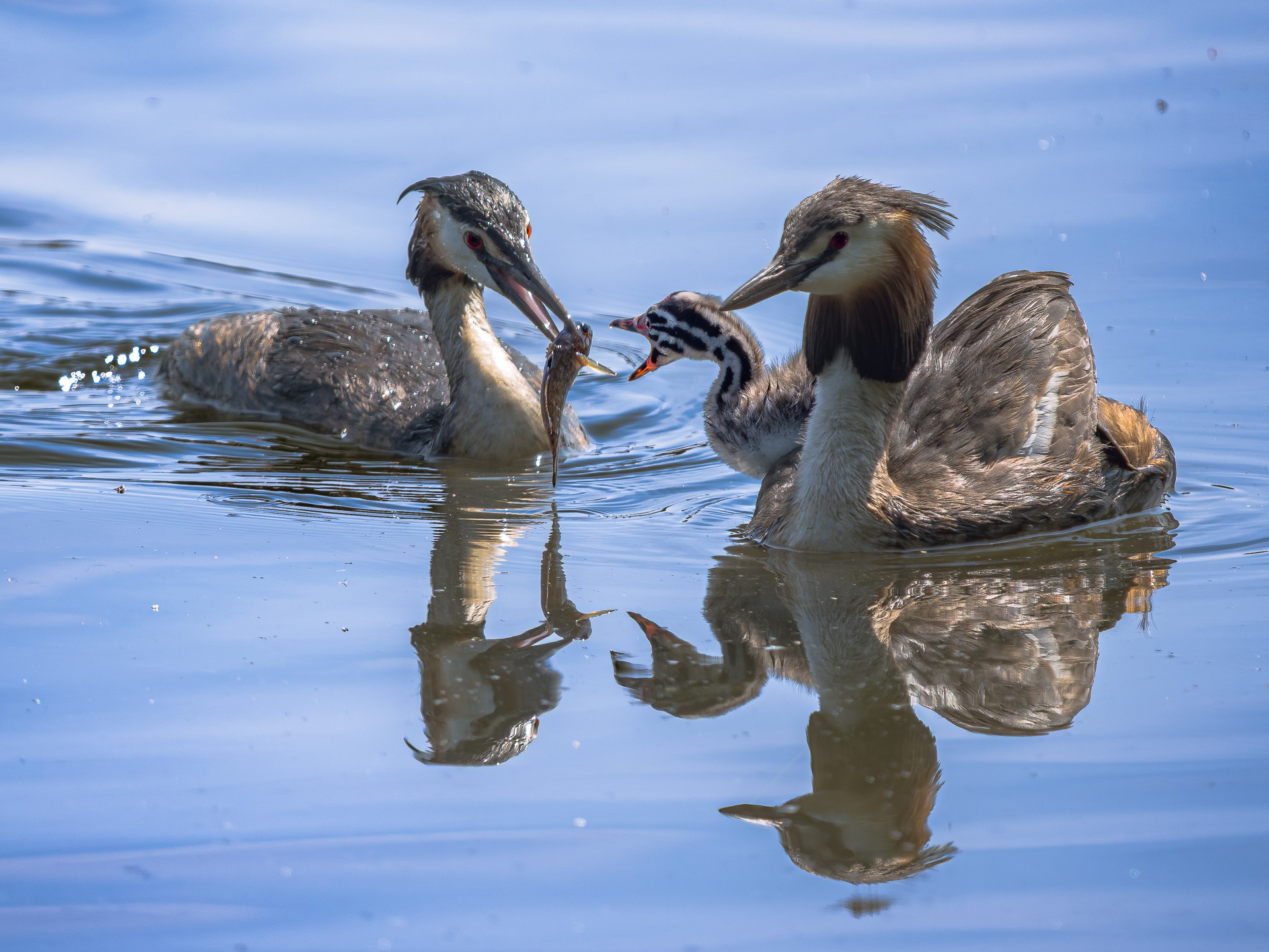 Haubentaucher Fütterung. Heute gibt's wieder Fisch.