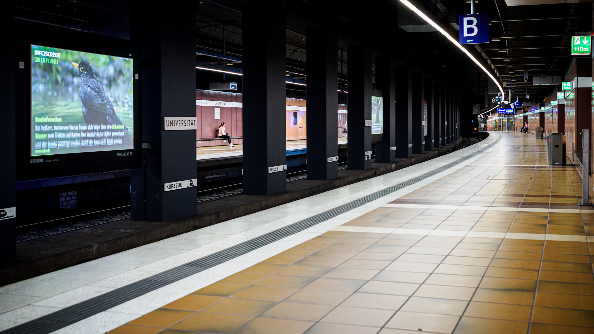 Gerade ist der Zug Richtung Vaihingen abgefahren und nun warten ein paar Fahrgäste auf den nächsten Zug.
