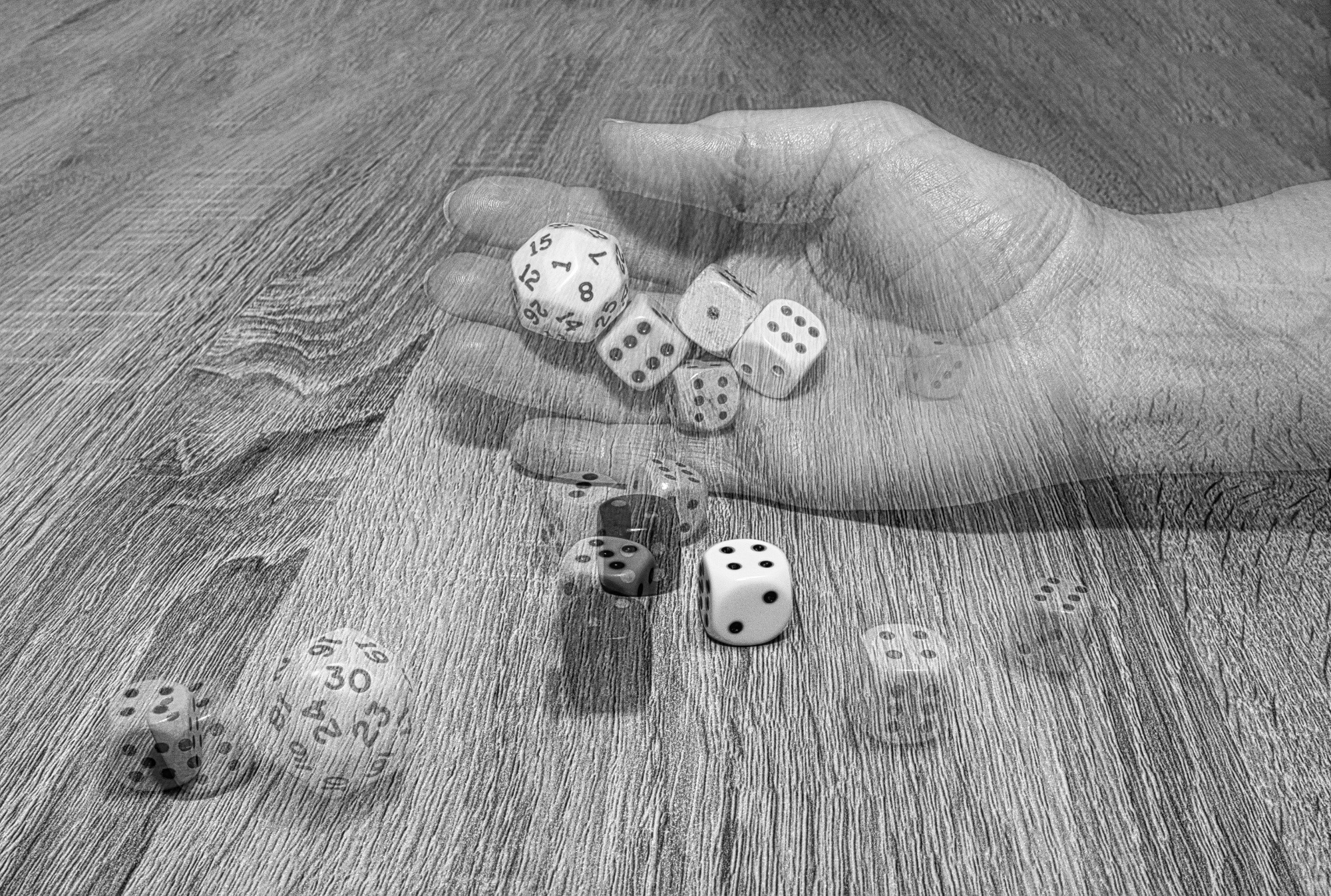 ... mit Langzeitbelichtung - ist noch sehr ausbaufähig, aber immerhin nach gefühltem 500-mal Würfeln (und runtergefallene Würfel wieder vom Boden aufsammeln) zumindest ein einigermaßen brauchbares Bild dabei.
