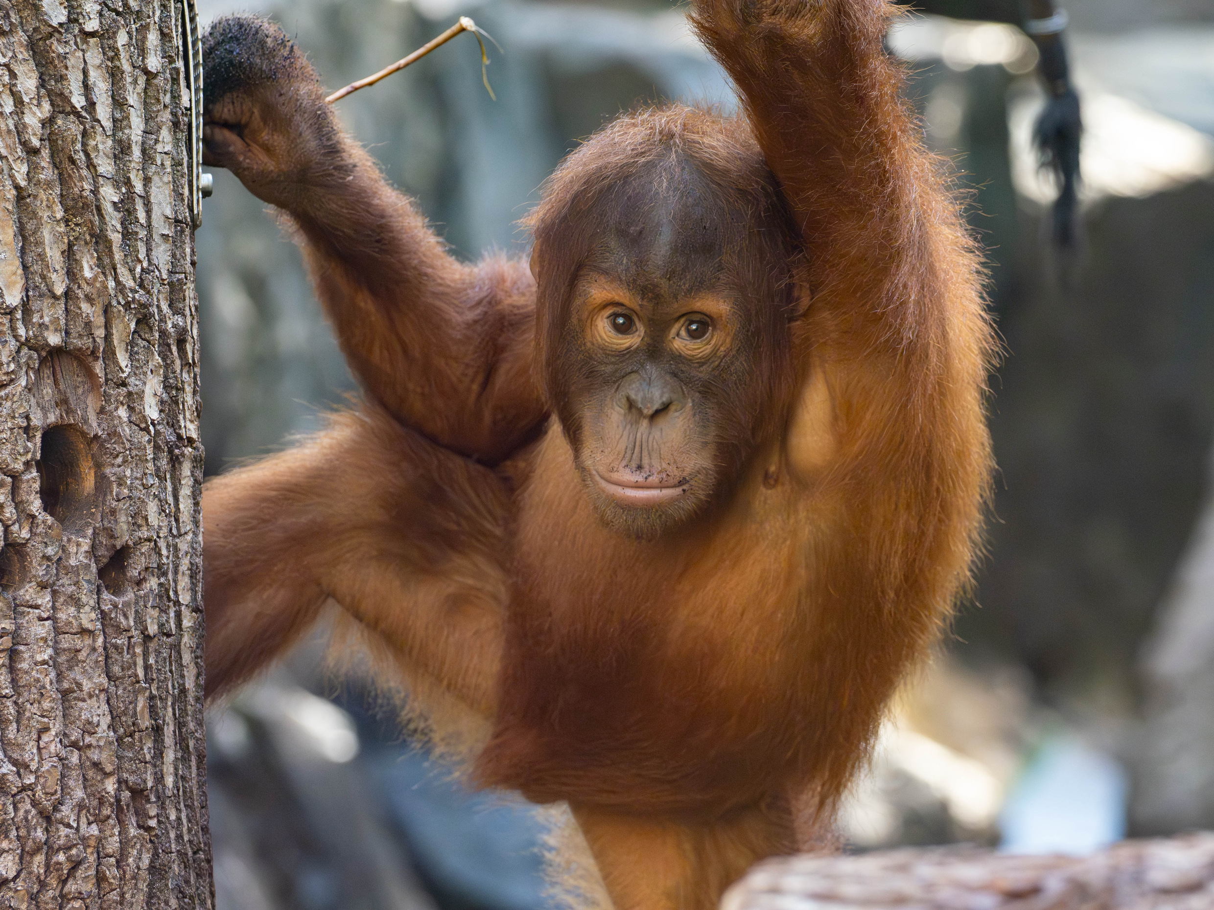 ... ist die Orang-Utan Dame auf das rausholen der Leckereien mit Hilfe eines Stöckchens...gleichzeitig lässt sie mich nicht aus den Augen.