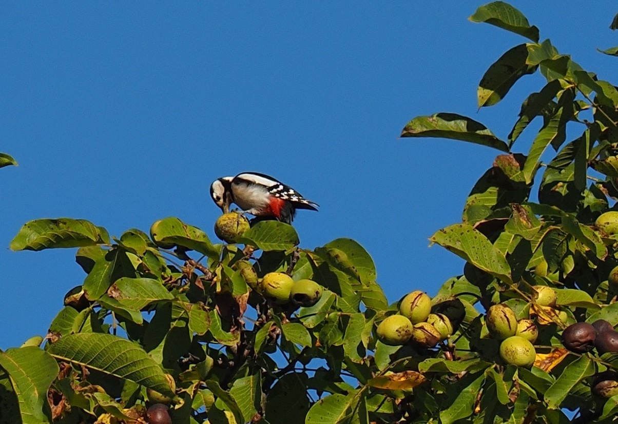 Buntspecht bei der Wallnussernte