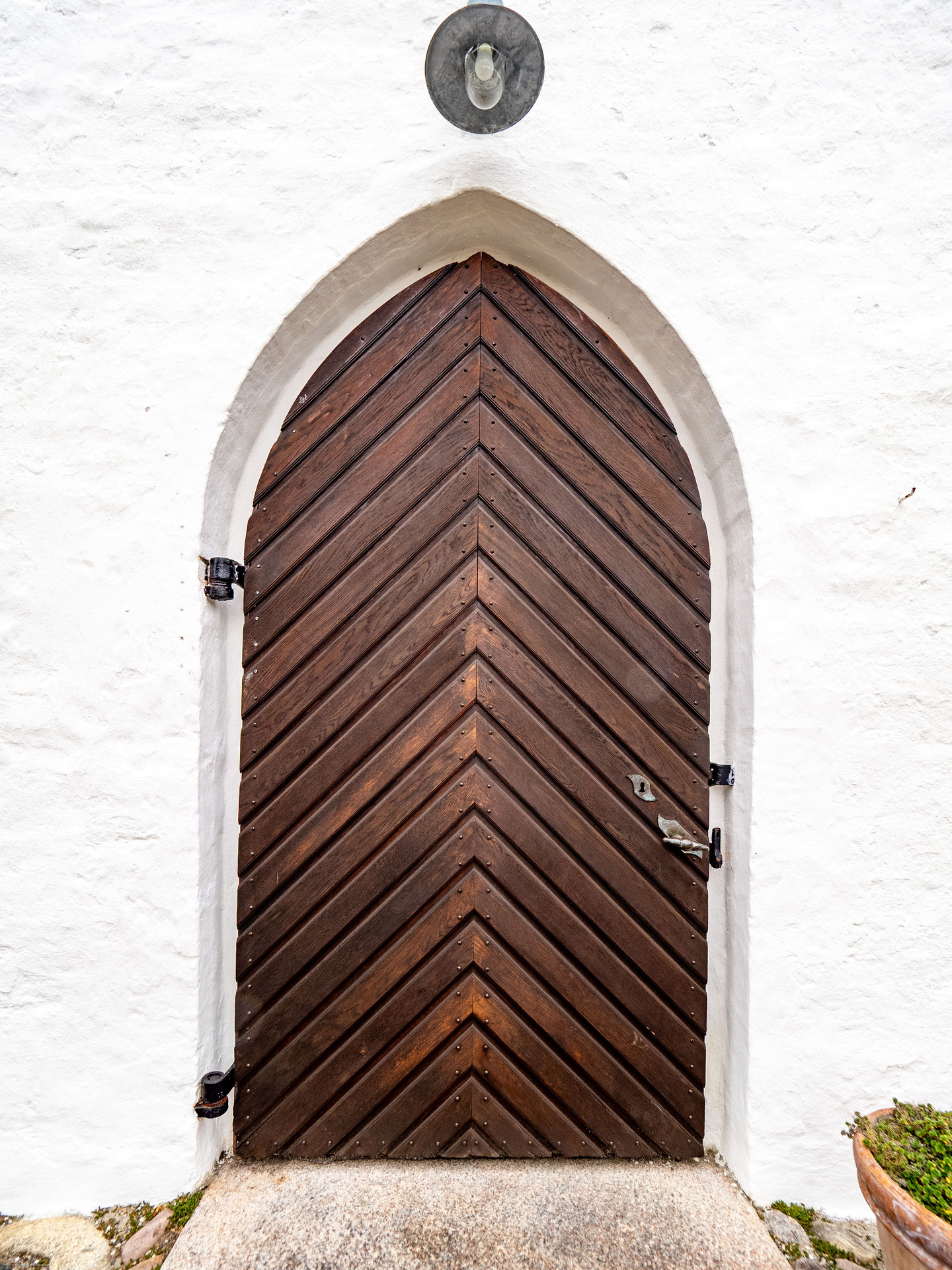 ... und 140 Schlitzschrauben ergeben von geschickter Handwerkerhand zusammengesetzt die Front einer veritablen Kirchentür. Die Tür gehört zur Onsbjerg Kirke, der ältesten der sieben Kirchen auf Samsoe