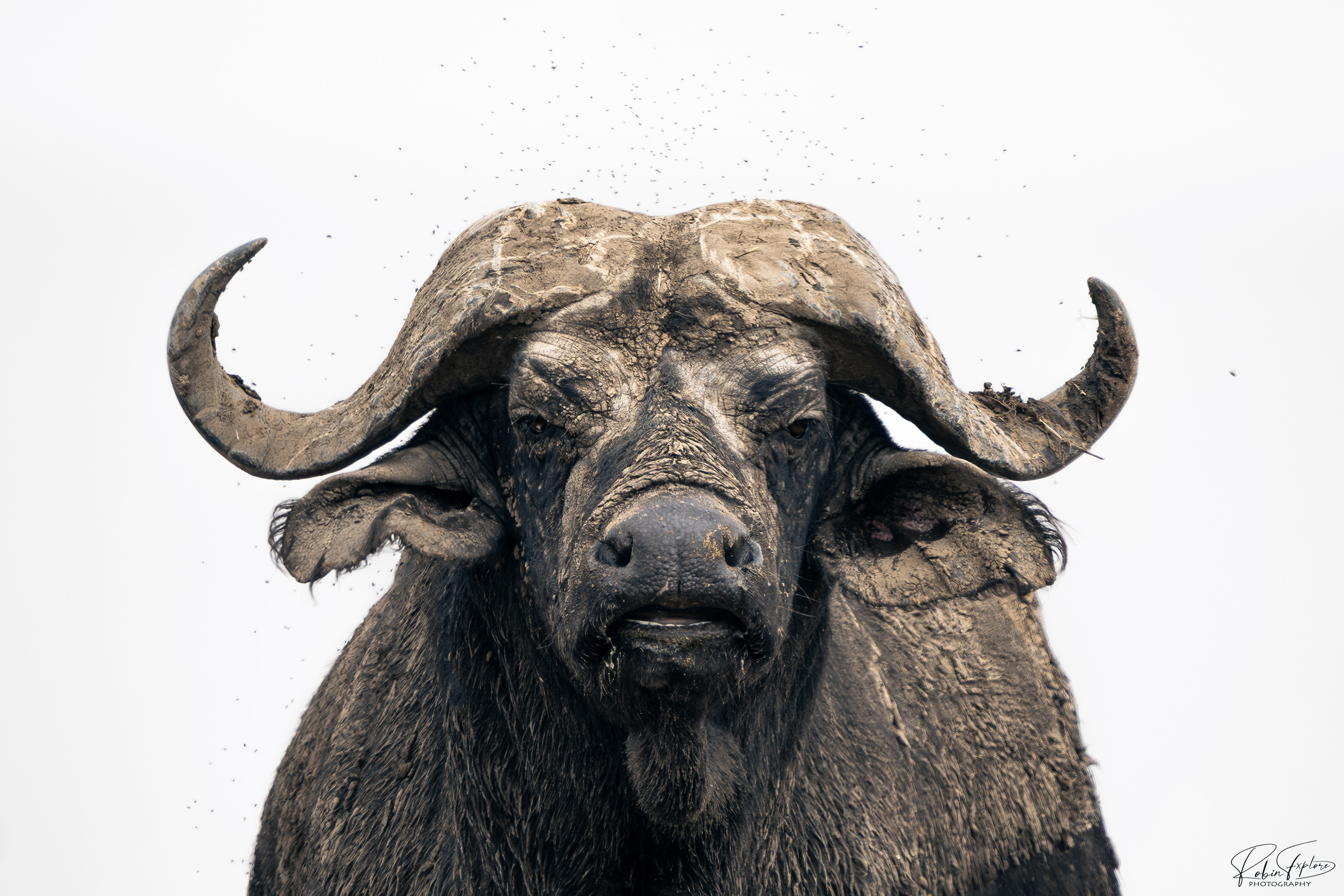Diesen Büffel haben wir in Murchison Falls gesehen. Eingeschlammt und bei jeder Bewegung stoben die Fliegen hoch. Ich mag Büffel gerade für Porträts sehr gerne, da sie meist sehr ausdrucksstarke Gesichter haben.