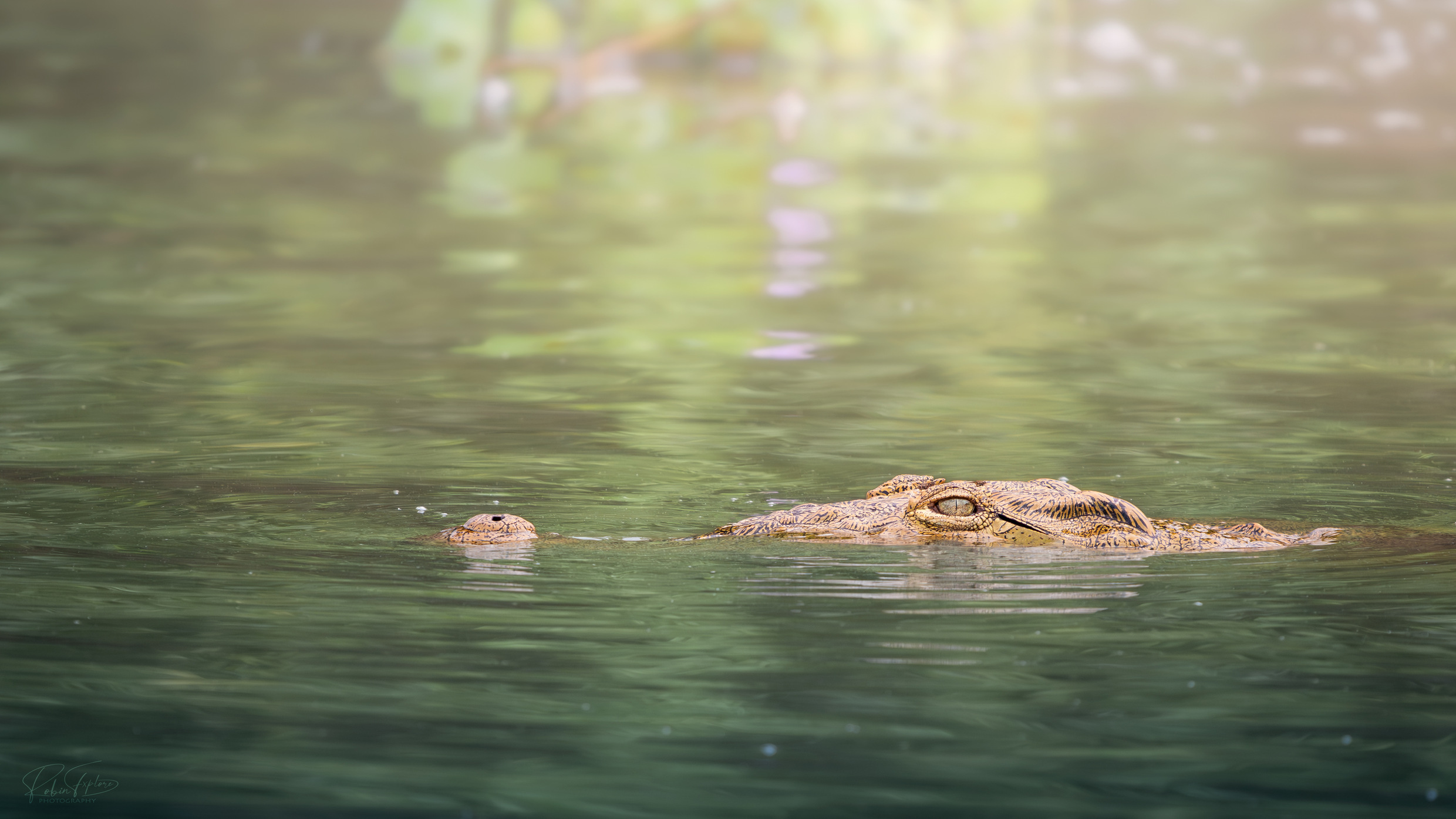 Auf dem Kazingula Channel konnten wir einige Krokodile beobachten... dieses wartet im Wasser auf Beute. An Land gab es dann ein paar schläfrige Exemplare, die sehr gut für Detailaufnahmen Model standen.