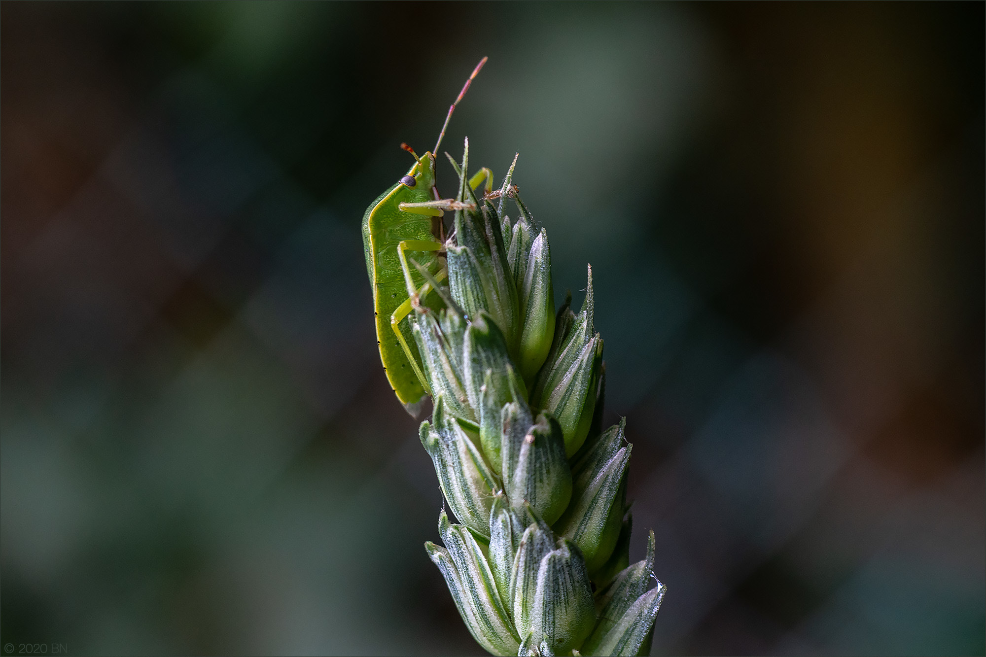Vögel sind schuld, dass nun ein paar Weizenhalme spriesen, leider im dunklen Schatten von Sträuchern. So musste ich die ISO auf 800 hochdrehen, damit 1/60 bei Blende 5,6 möglich wurde.