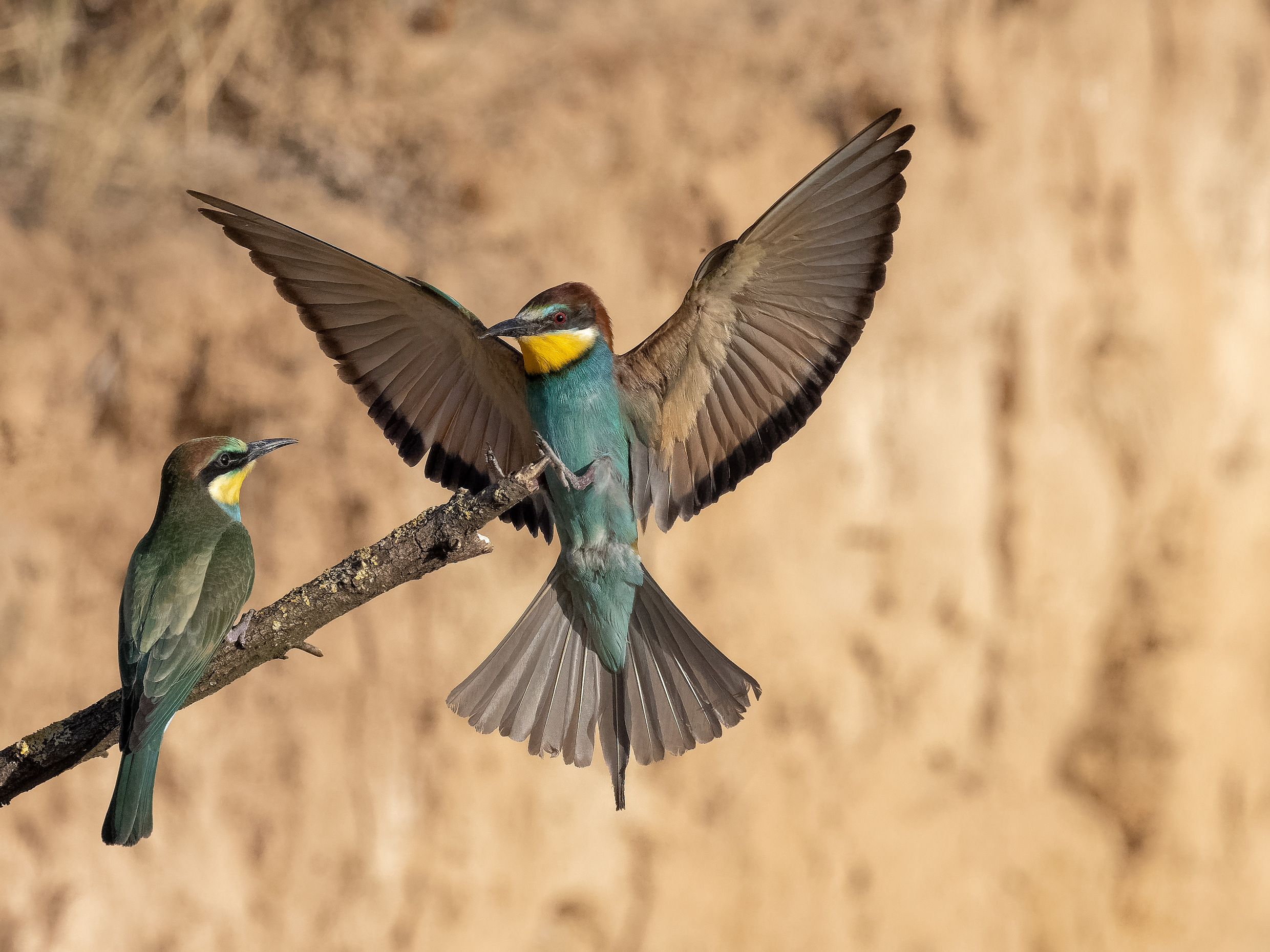Eigentlich wollte ich ja nicht noch mehr Bienenfresserbilder zeigen, aber dann bin ich doch mal wieder vorbei gefahren, um zu schauen, ob die Jungvögel schon ausgeflogen sind und dann war da dieser Ast in nur 10m Entfernung…und ja die Jungvögel (links) waren da