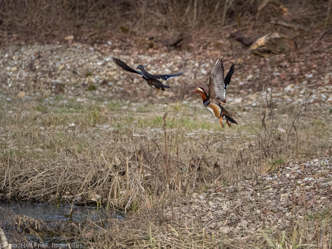 Heute hatte ich Glück: gemäss unserer "Vogelwarte" leben nur 20 bis 30 Paare der Mandarin-Enten frei in der Schweiz. Ich konnte sie fast 10' lang beobachten. Hier sind Ausschnitte zu sehen (näher ran wollte ich nicht).