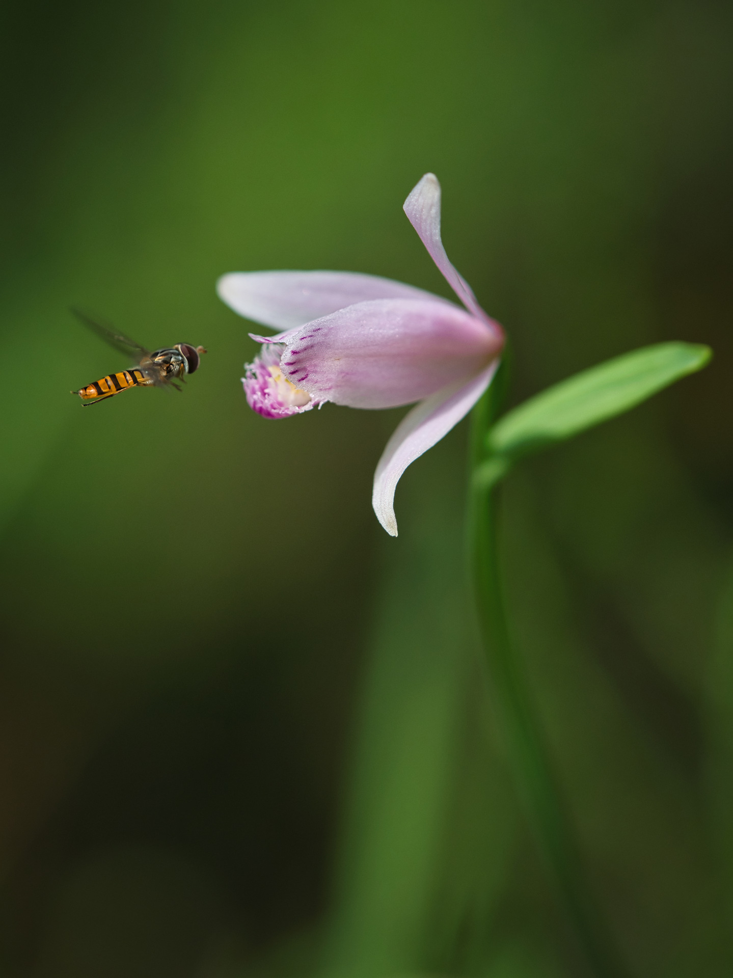 Schwebefliege vor ihrer großen Liebe. eine Moororchidee