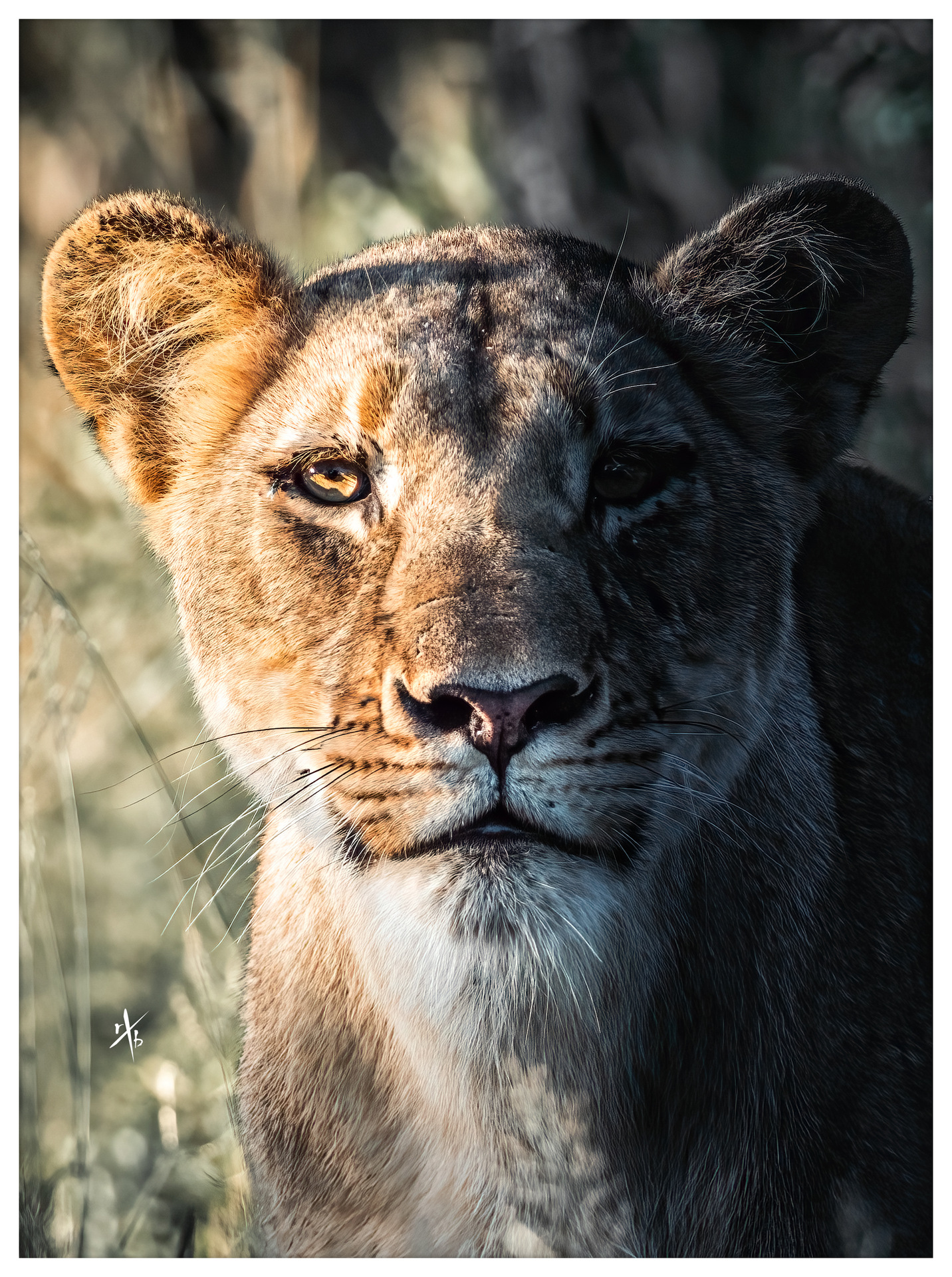 Dabei rausgekommen ist eine ganze Serie von Aufnahmen, unter anderem dieses Porträt im Halbschatten dank der sehr tief stehenden Abendsonne... inklusive sehr passender Fliege am Auge. Bei Großkatzen sind die immer in ganzen Schwärmen zu finden.
