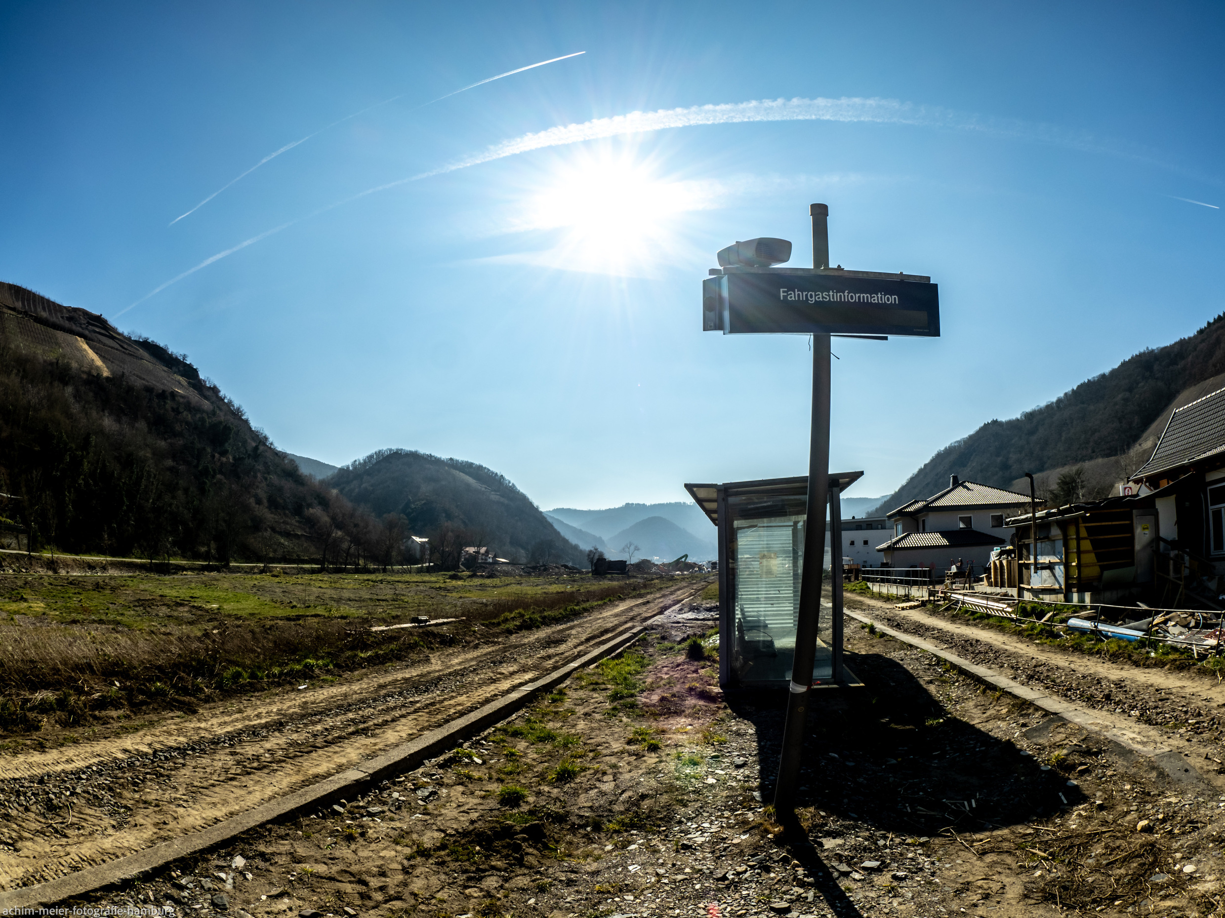 ... braucht hier für lange Zeit niemand. Die Ahrtalbahn fährt schon wieder bis Walporzheim. Hier am Bahnhof in Dernau wird noch für lange Zeit kein Zug fahren.