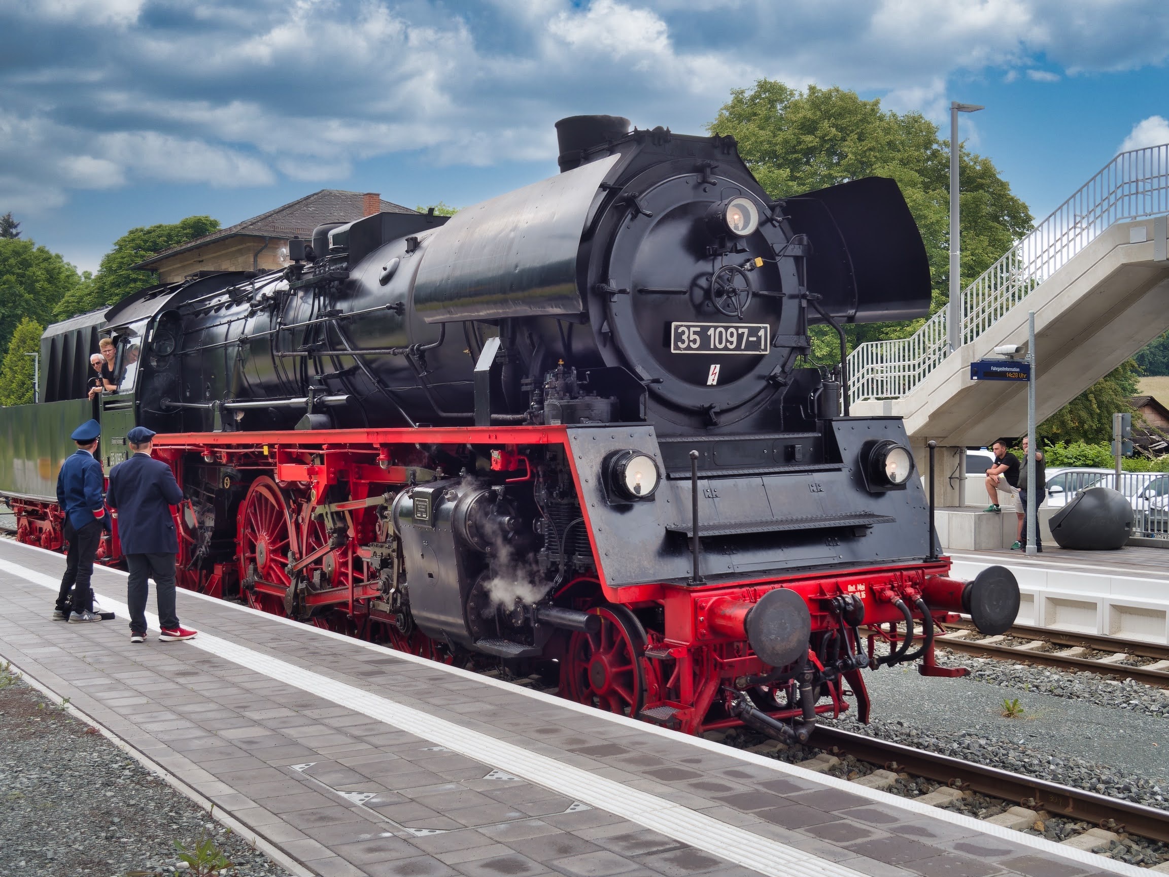 Hier die Lok aus der Nähe im Bahnhof Marktschorgast. Nein, es ist keine Modellbahn-Lok.