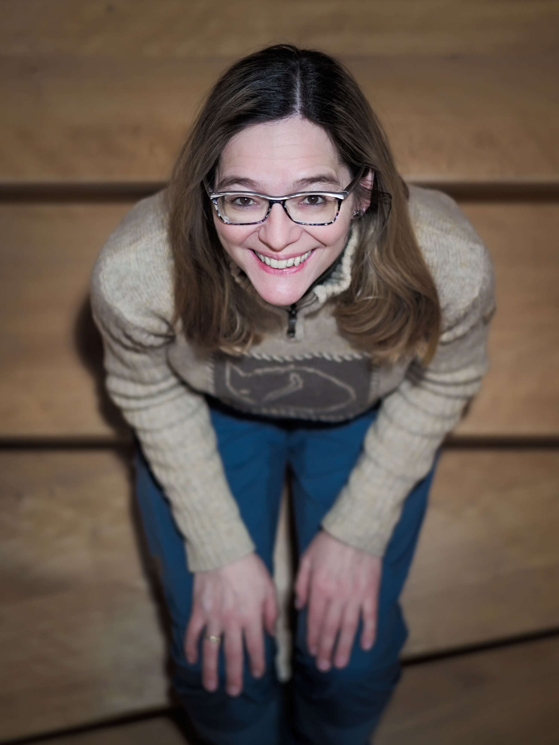 Das ist jetzt zwar nicht mit Fenster und auch nicht mit Fensterlicht, sondern mit Dauerlicht (Rollei Soluna II.60), aber es ist ein aktuelles Portrait. Ich wollte mal mit der Perspektive spielen und fotografierte vom ersten Stock runter in die Treppe, auf der meine Frau stand und mich "anhimmelte" :)