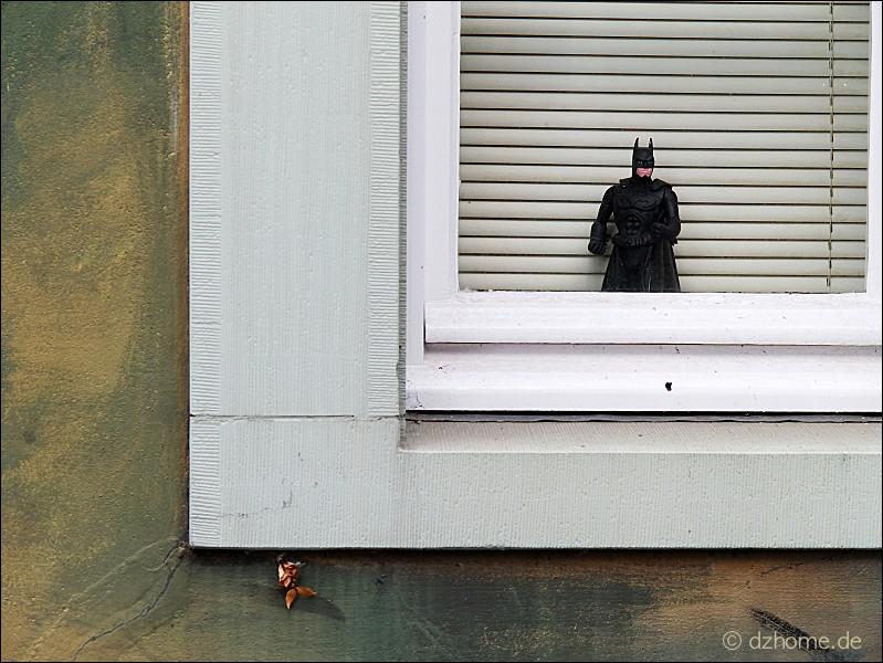 Batman hinter Fensterglas