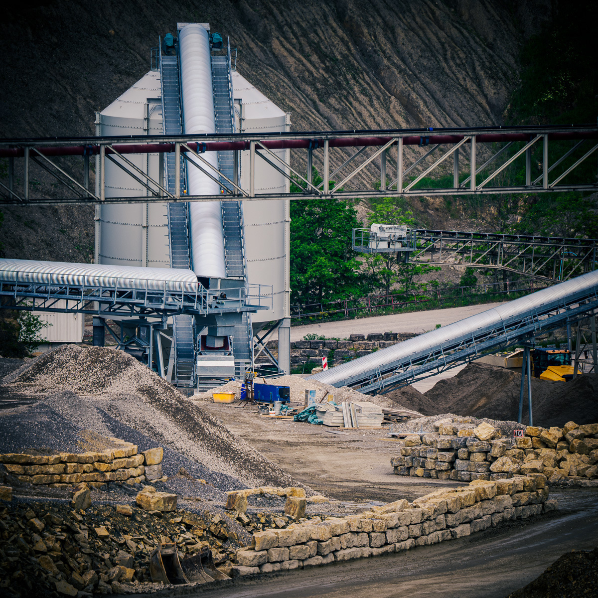 In der Nähe ist auch ein Schotter- und Kieswerk und das Bild zeigt hier die Förderanlage von dem Werk. Die Anlage ist durch Unmzäunung gesperrt und dort wird gesprengt um mehr Schotter abzutragen. Wie riesig die Grube ist, kann man sehen, wie sehr in die Natur eingegriffen wird.