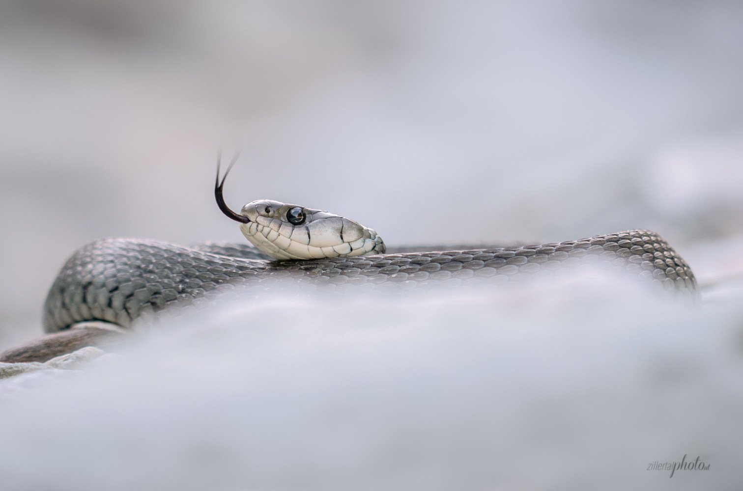 Barrenringelnatter aufgenommen mit EM1 MarkII und dem FT 50-200SWD Kamera auf Boden aufgelegt und der dahinter auf der Wampe :-)