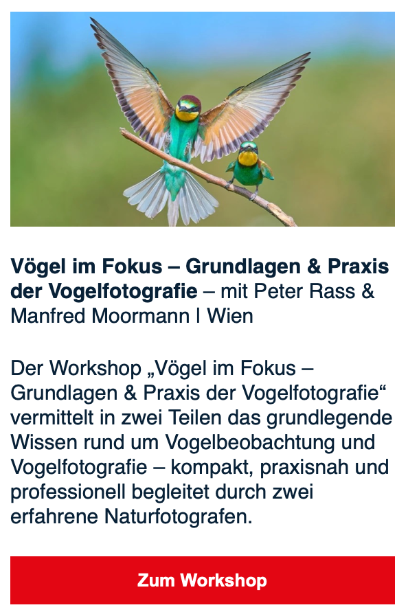 Gemeinsam mit einem Sony-Fotografen wurde ich eingeladen, Interessierten Aspekte der Vogelfotografie näher zu bringen: Das Ganze findet am 3. und 4. Oktober 2025 in Wien statt und am 10. und 11. Oktober 2025 in Klagenfurt am Wörthersee. Am ersten Halbtag machen wir "Theorie" und am zweiten Halbtag sind wir dann draußen. Da ich kein echter Ornithologe bin, Peter Rass aber ein sehr erfahrener, haben wir uns den Theorieteil in eine "Pflicht" und "Kür" eingeteilt. In der Pflicht geht es, hoffentlich unterhaltsam, um ein paar technische Aspekte. Prinzipiell machen wir das herstellerneutral, aber natürlich zeigen wir auch die Unterschiede auf, die Systeme haben inklusive der jeweiligen Stärken und Schwächen. Das Schöne ist, Peter ist von Sony begeistert (kommt von Nikon), ich von Oly (hatte früher Canon). Ich hoffe ja noch auf ein Wunder, so dass ich mein bestelltes 50-200/2.8 herzeigen kann. Im Technikteil vermittle ich u.a. was "digital" heißt und warum das zT anders ist als "analog", erkläre ein paar physikalische Basics die man als Fotograf/Fotografin nützlich finden könnte (hoffentlich sehr anschaulich und leicht verständlich bis hin ETTR). und schließe dann ab mit ein paar ersten gestalterischen Regeln. Dabei nehme ich, natürlich, teilweise Anleihen bei den Alten Meistern der Malerei usw. Auch ein paar Tricks werde ich verraten, speziell für Anfänger der Naturfotografie. In der Kür geht es dann um wesentliche Hilfsmittel inklusive Empfehlungen (welche Ferngläser, welche Literatur,...), Topografie der Vögel, Herausforderungen der Naturfotografie bis hin zur Ethik und Aspekten, die ein Vogelfoto erfolgreich machen. Mit sehr, sehr vielen sehr schönen Beispielen und Erklärungen und gaaaanz viel Bildgestaltung.- 4 Antworten