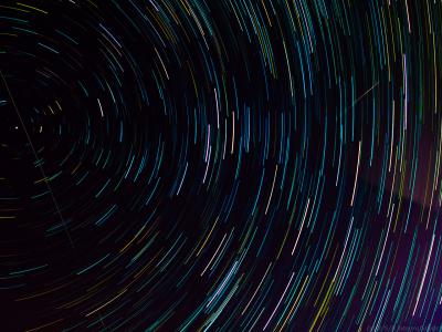 Die einzige 'echte' Sternschnuppe geht in den Startrails und den anderen Effekten in der Tat fast unter.