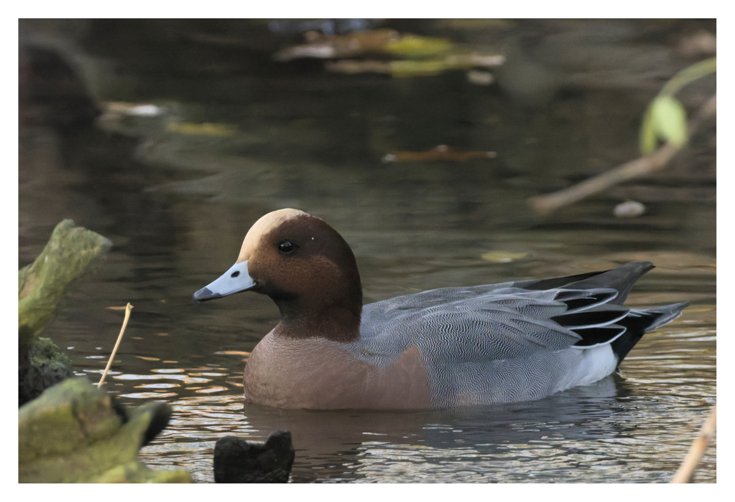 Die Pfeifente ist bei uns am Mühlbach ein ungewöhnlicher Gast. Meistens sieht man sie an größeren Gewässern, wo sie für gewöhnlich weiter entfernt ist.
