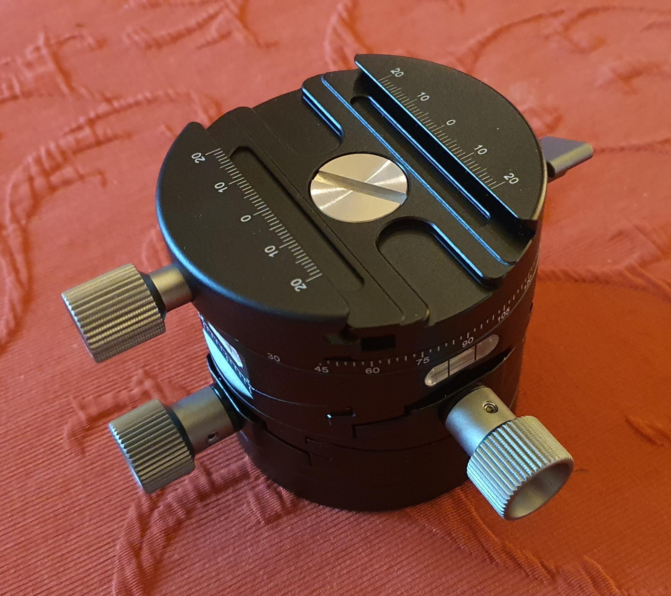 In wenigen Wochen gibt es mit dem G20 einen großen Bruder der +-15° Einstellungsbereich bringt. Er ist nur wenig teurer, dafür aber erheblich schwerer. Dann gibt es auch eine separate Rotationseinheit mit Getriebe, die würde die 3. Achse auch noch Feineinstellbar machen.