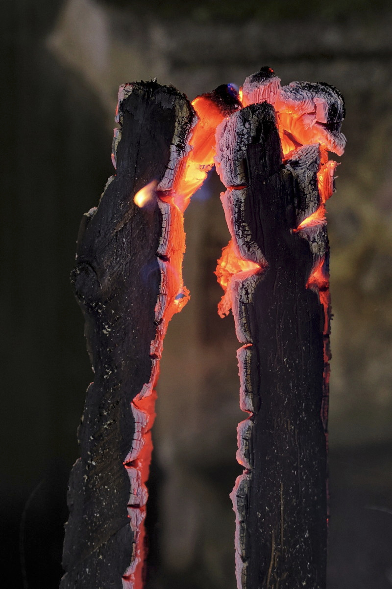 Hab auch eins kürzlich gemacht: Fast abgebranntes Holzfeuer in einer Schale: