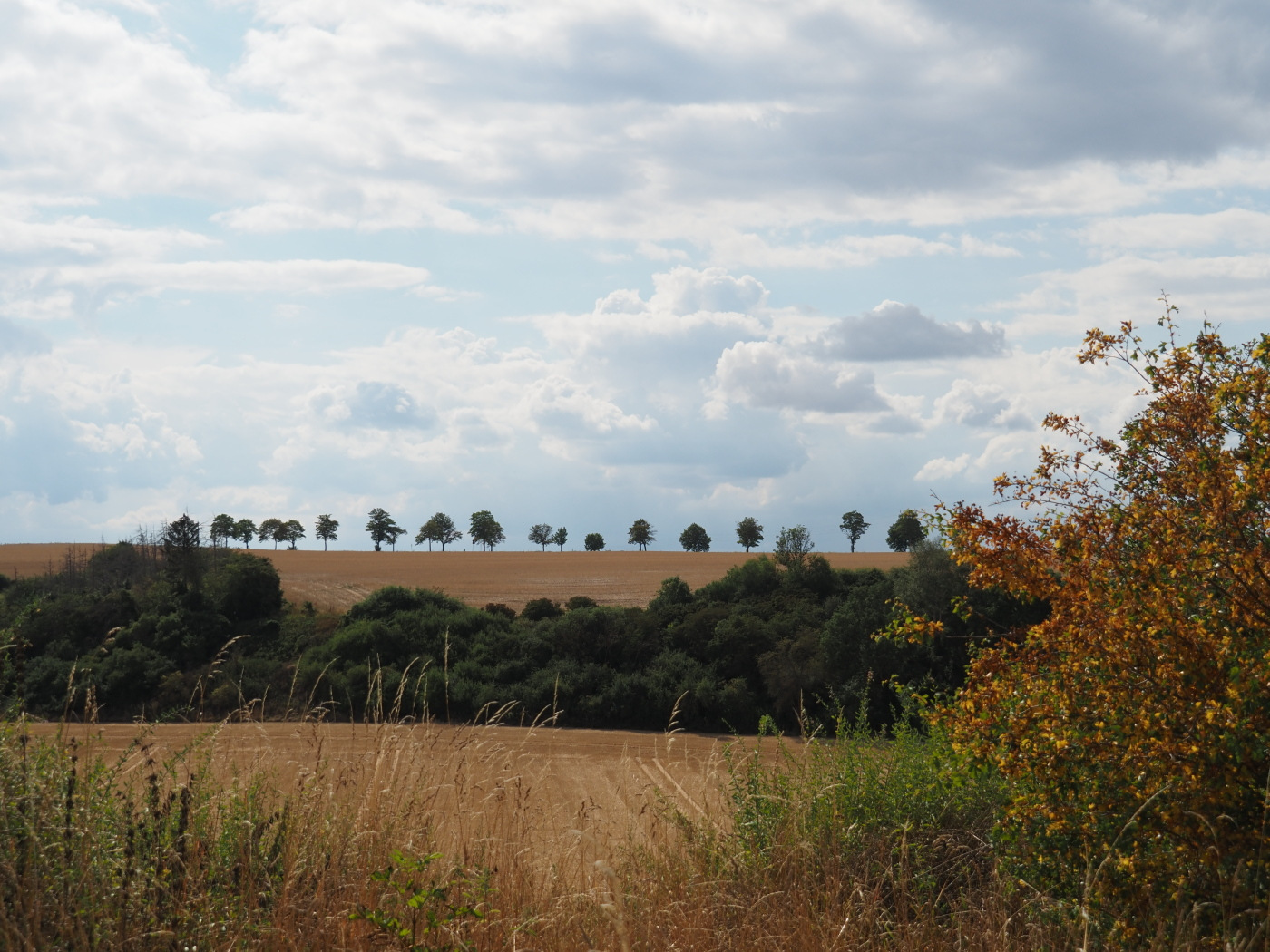 Nichts ist schöner als mit Kamera und Hund durch Wiesen, Felder und Wälder zu streifen, auch an einem schwülwarmen Tag im trockenen Sommer 2022. Noch in Hessen, aber fast schon in Bayern (Unterfranken).