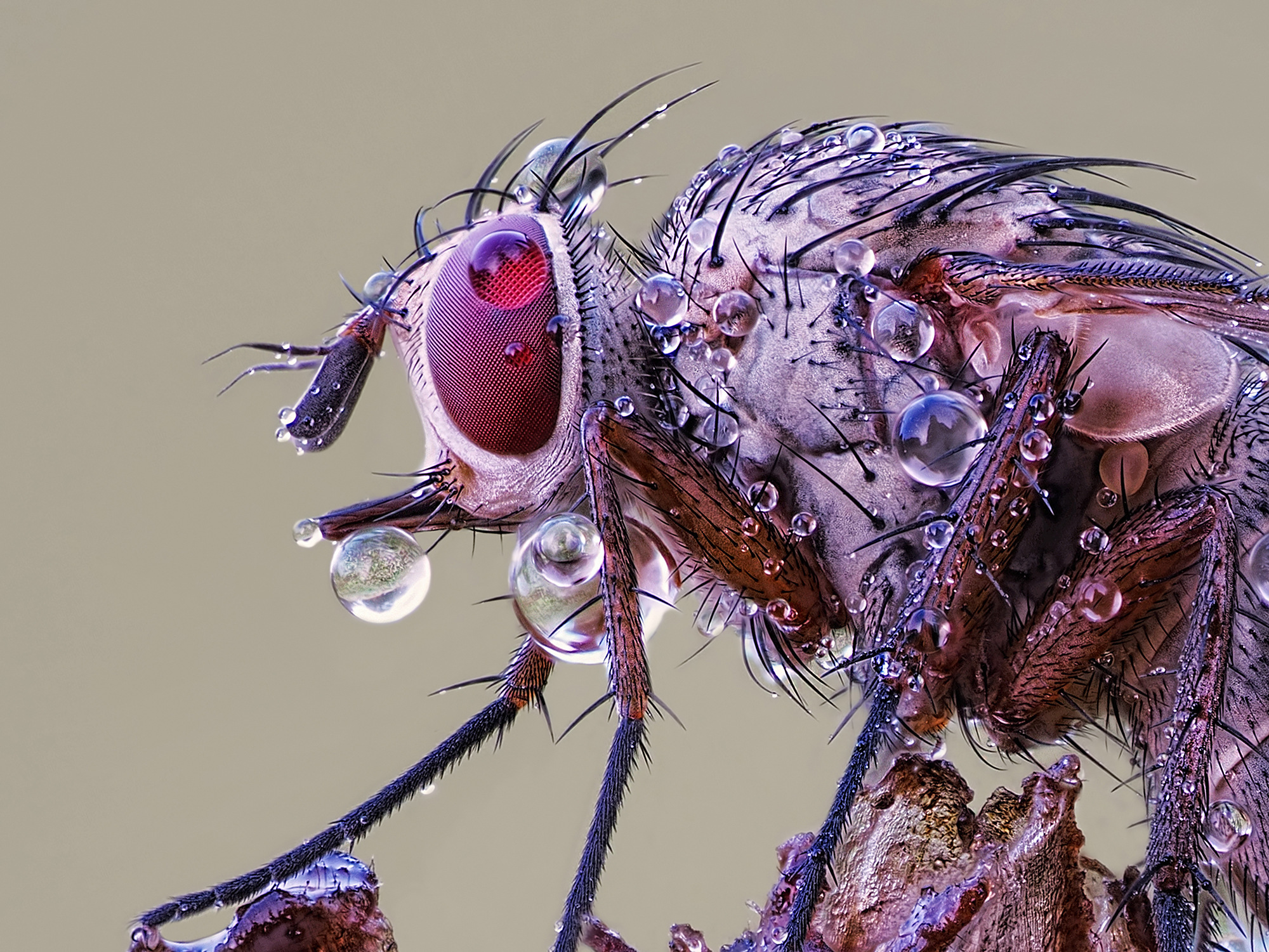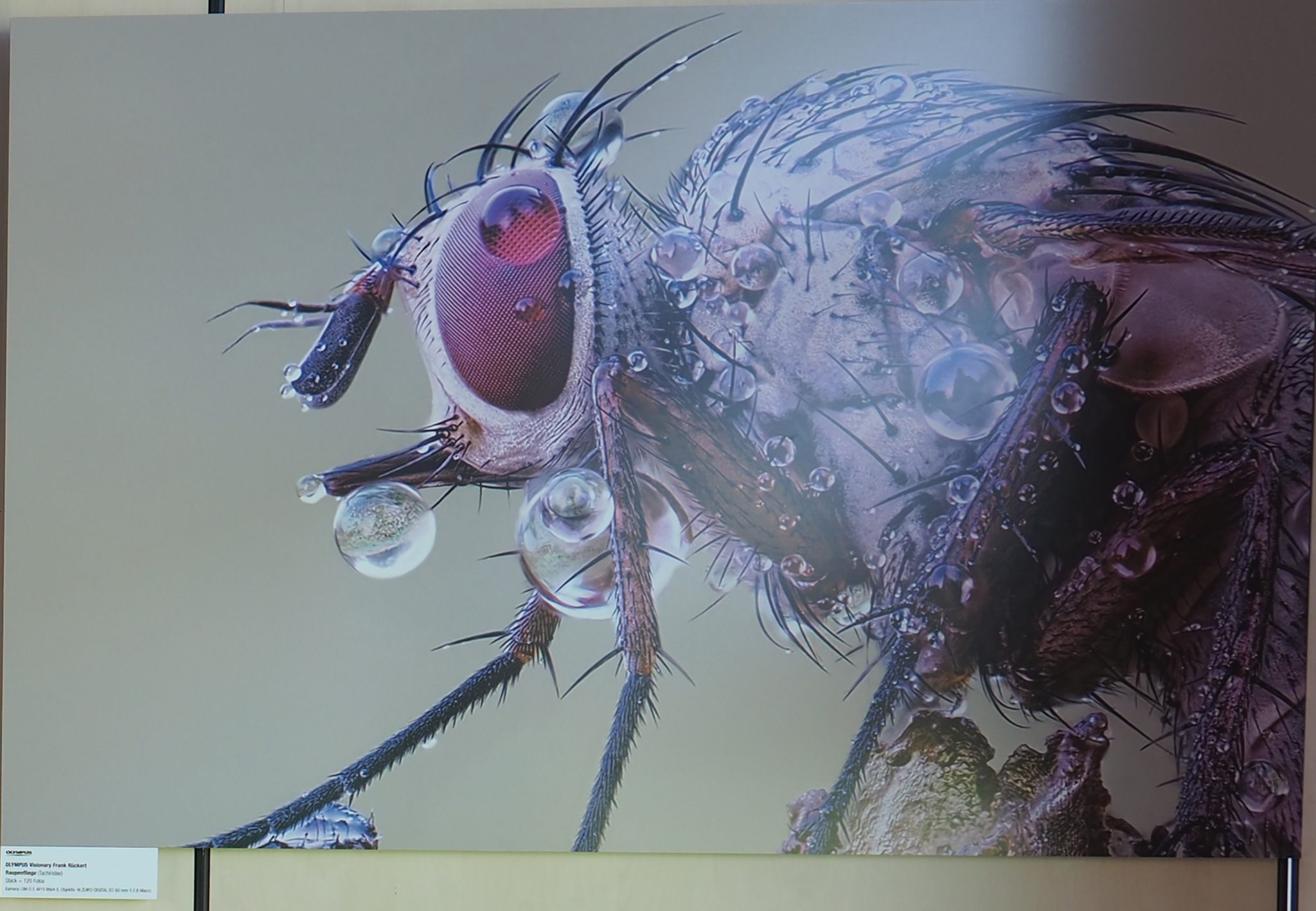Nein, sie war tot. Ich habe sie zwischen einem Innen- und Außenfenster gefunden. Lebende Insekten in diesem großem ABM zu stacken, scheint mir fast unmöglich. Man darf ja nicht vergessen, dass so ein Auge insgesamt nur 1-2mm groß ist und ein zehntel Millimeter Bewegung eine Verschiebung der Facettenaugen um mindestes 5 Reihen Facettenaugen bewirken wĂŒrde. Ich habe mir aber vorgenommen, jetzt im FrĂŒhling, wenn der Frost so manches Insekt in einen besonders starren Zustand versetzt, dies auch am Feld zu testen.