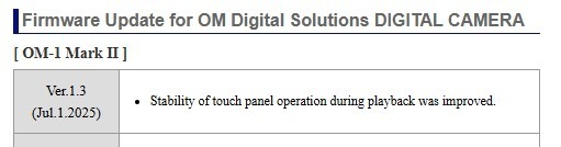 Firmware-Updates für OM-1 Mark II (V 1.3) und OM-3 (V 1.1) sind verfügbar.
